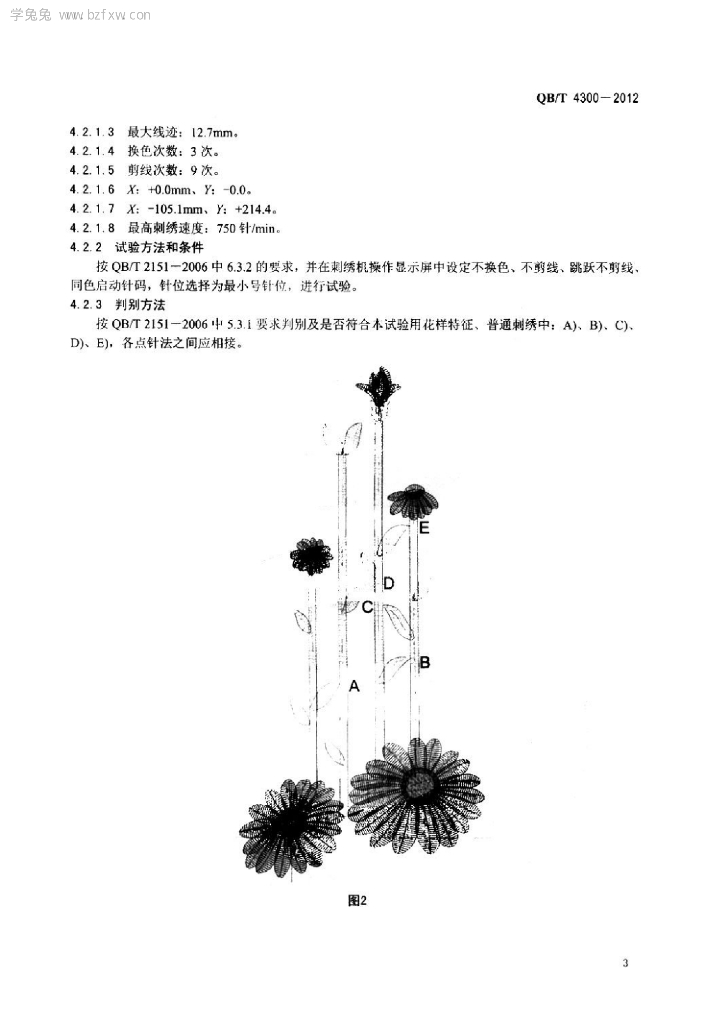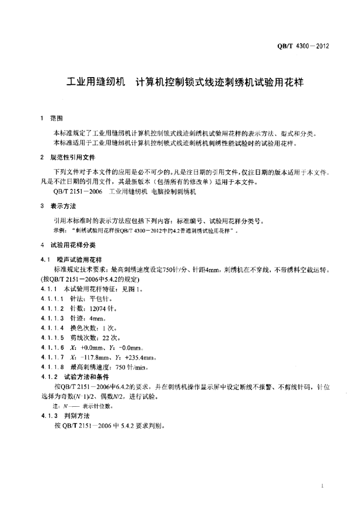 QB/T 4300-2012 工业用缝纫机计算机控制锁式线迹刺绣机试验用花样