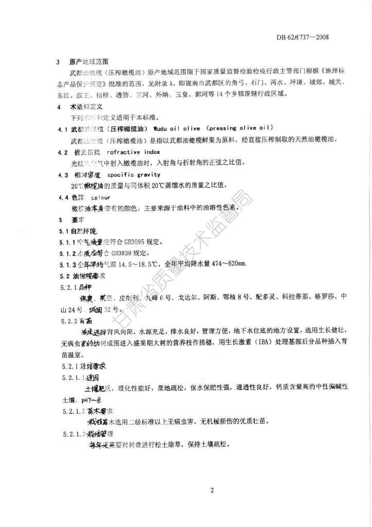 DB62/T 1737-2008 地理标志保护产品 武都油橄榄(初榨橄榄油)