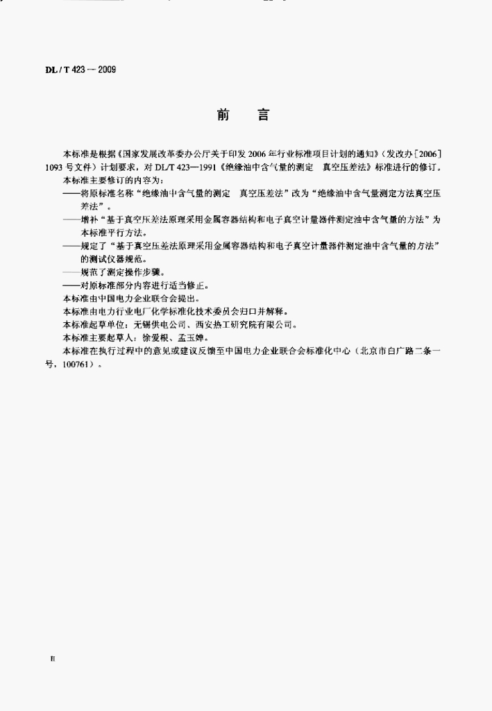 DL/T 423-2009 绝缘油中含气量测定方法真空压差法
