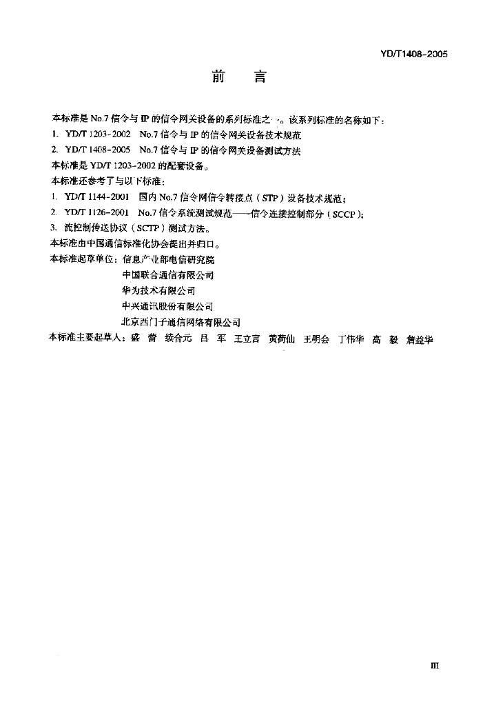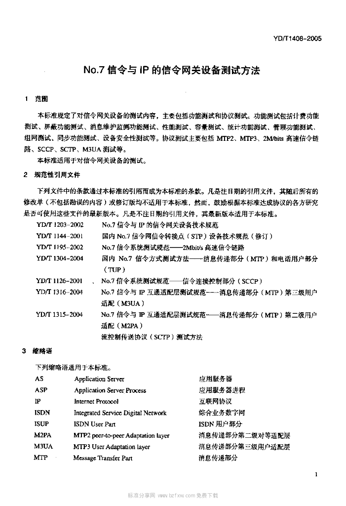 YD/T 1408-2005 No.7 信令与 IP 的信令网关设备测试方法