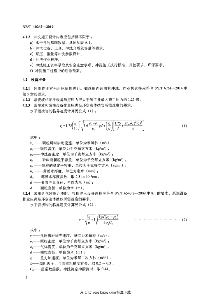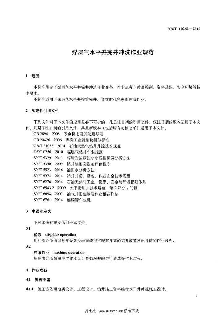 NB/T 10262-2019 煤层气水平井完井冲洗作业规范