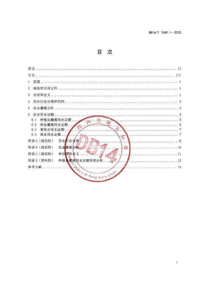 DB14/T 1049.1-2025 山西省用水定额 第1部分:农业