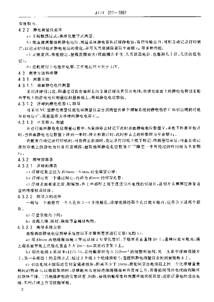 JT/T 311-1997 油船油舱静电测量方法