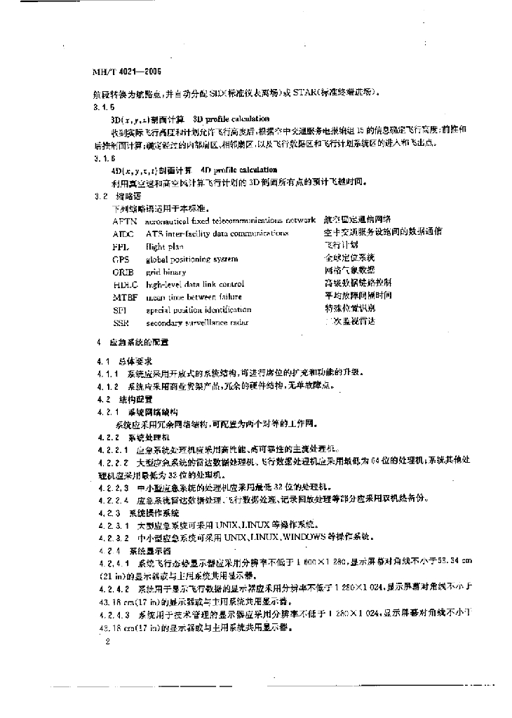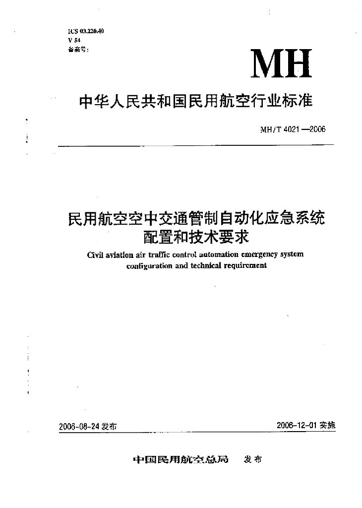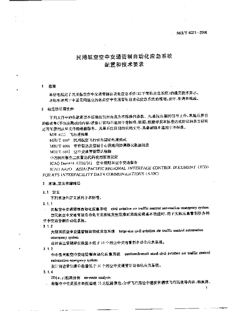 MH/T 4021-2006 民用航空空中交通管制自动化应急系统配置和技术要求