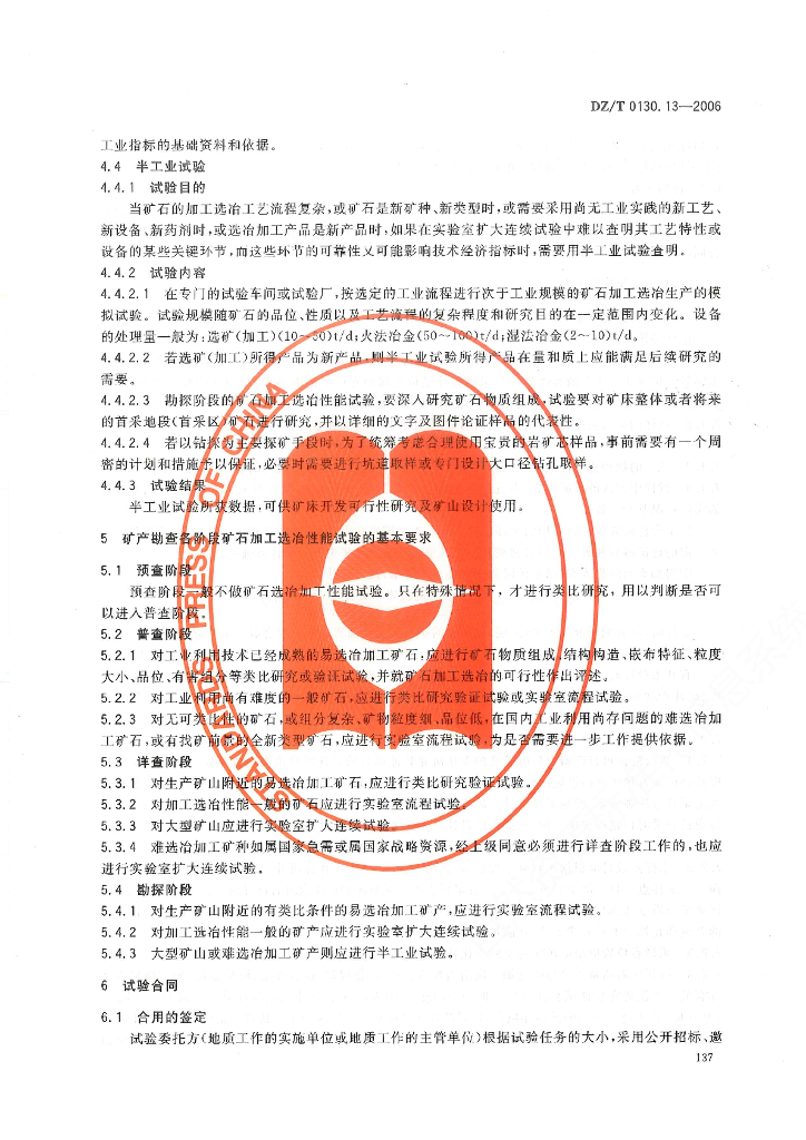 DZ/T 0130.13-2006 地质矿产实验室测试质量管理规范 第13部分:矿石加工选冶性能试验
