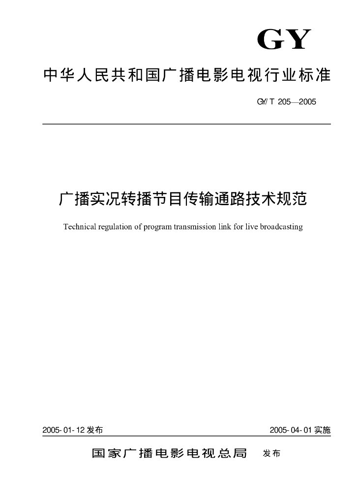 GY/T 205-2005 广播实况转播节目传输通路技术规范