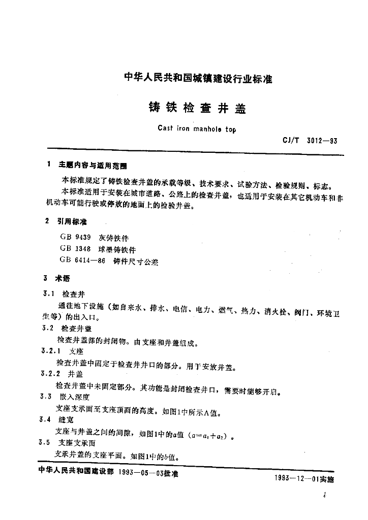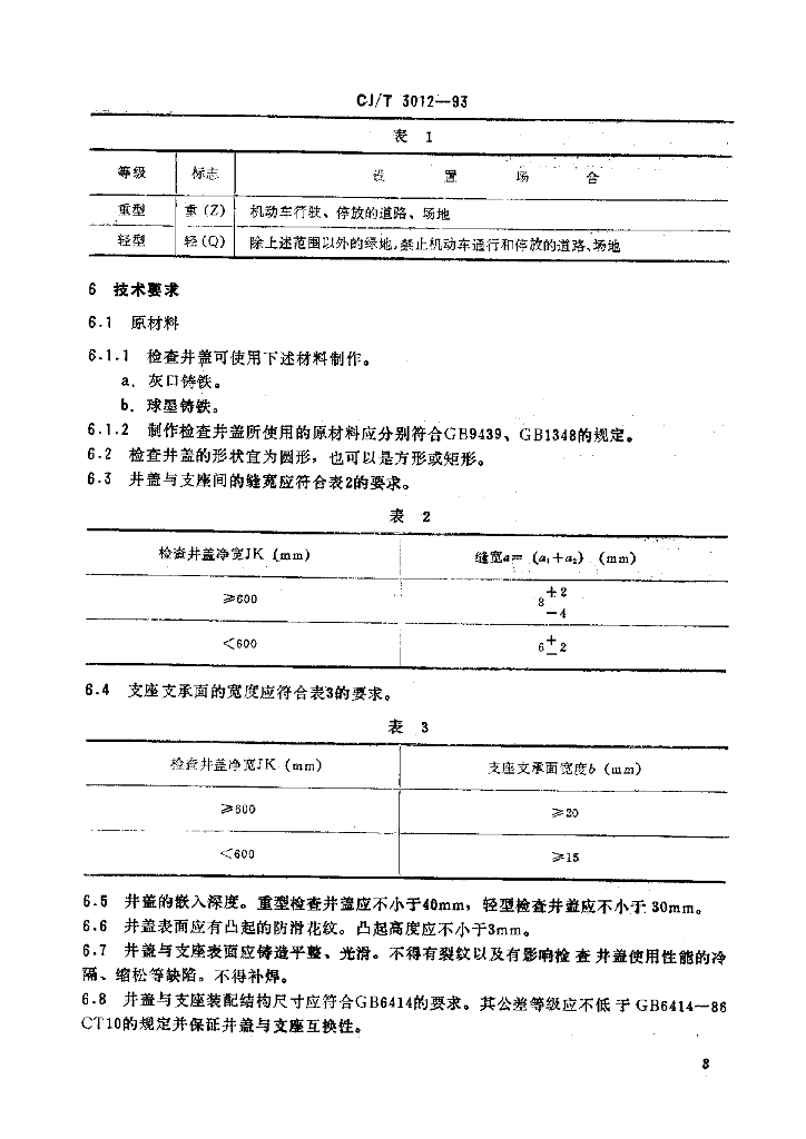CJ/T 3012-1993 铸铁检查井盖
