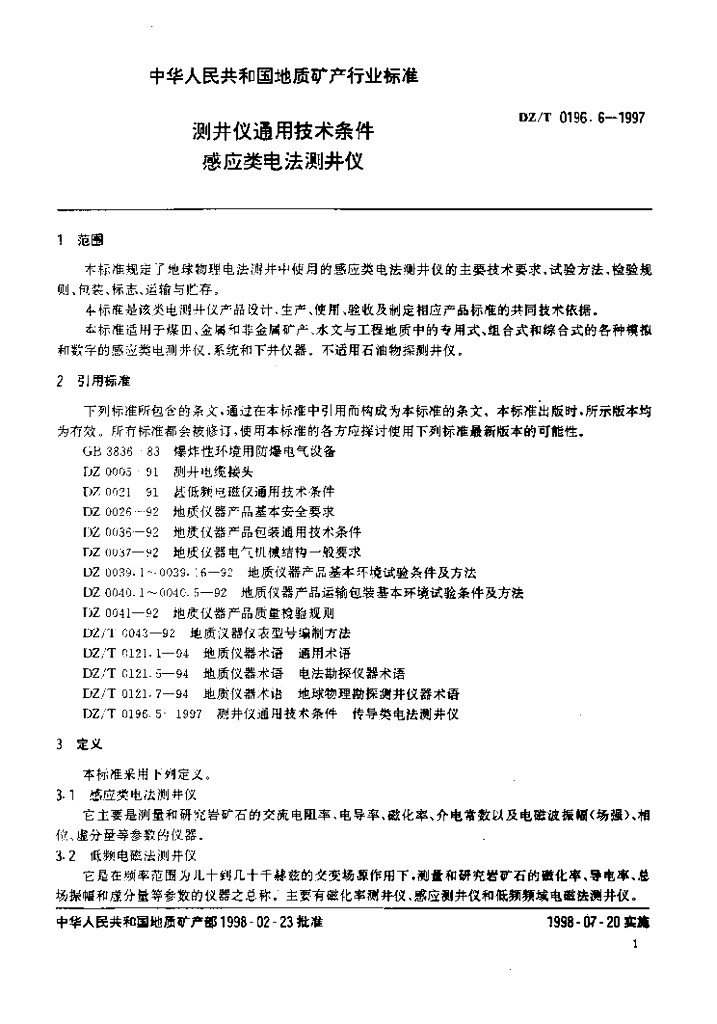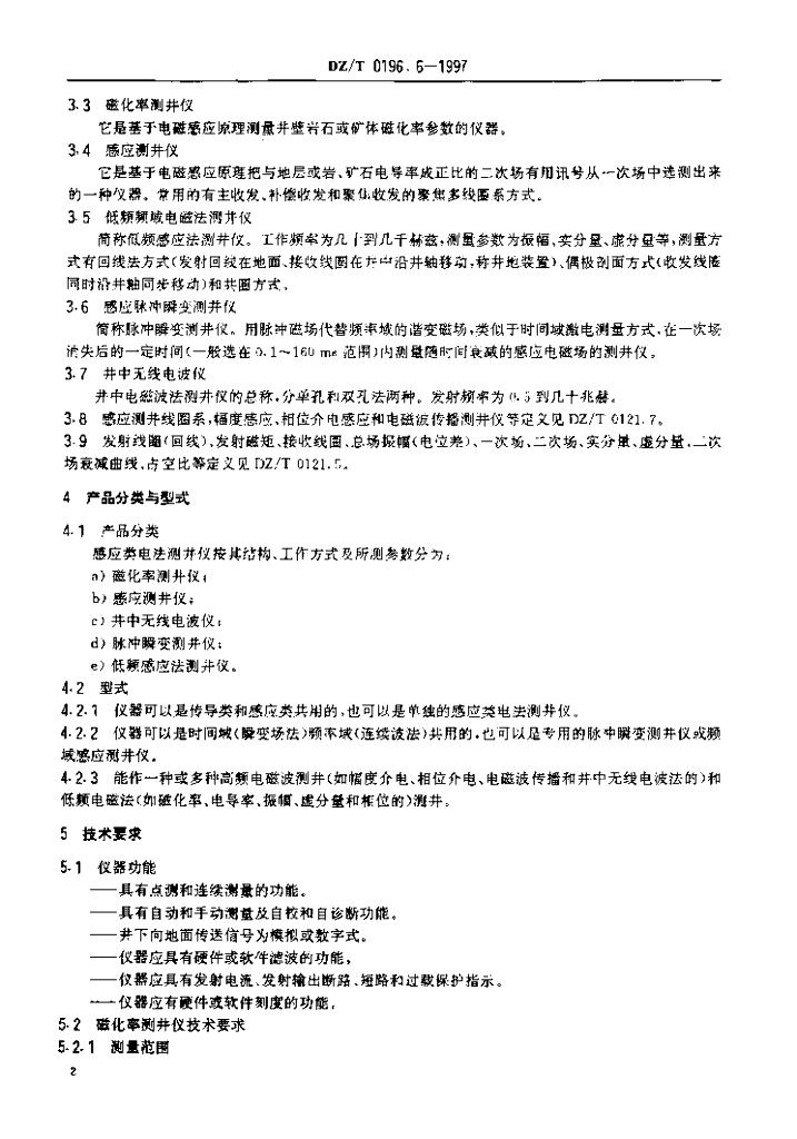 DZ/T 0196.6-1997 测井仪通用技术条件感应类电法测井仪