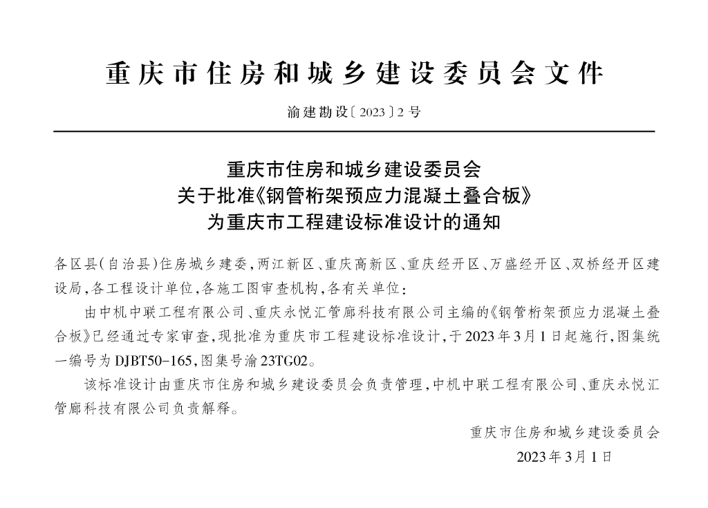 渝23TG02 钢管桁架预应力混凝土叠合板(35、40mm厚底板)图集(DJBT50-165)