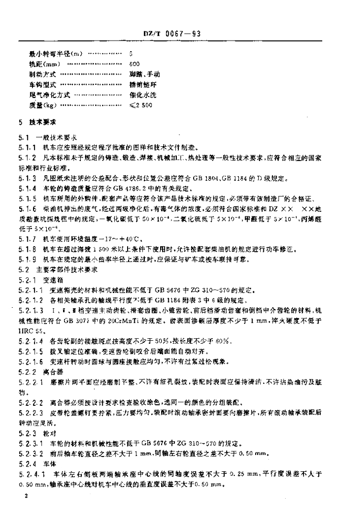 DZ/T 0067-1993 地质勘探内燃机车技术条件