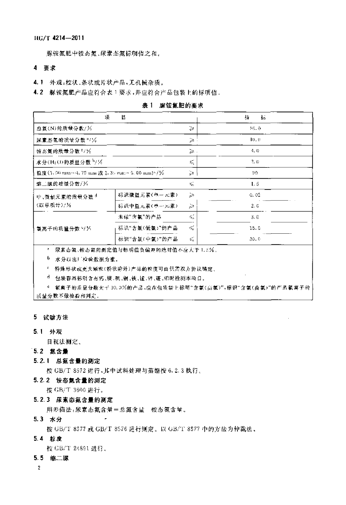 HG/T 4214-2011 脲铵氮肥