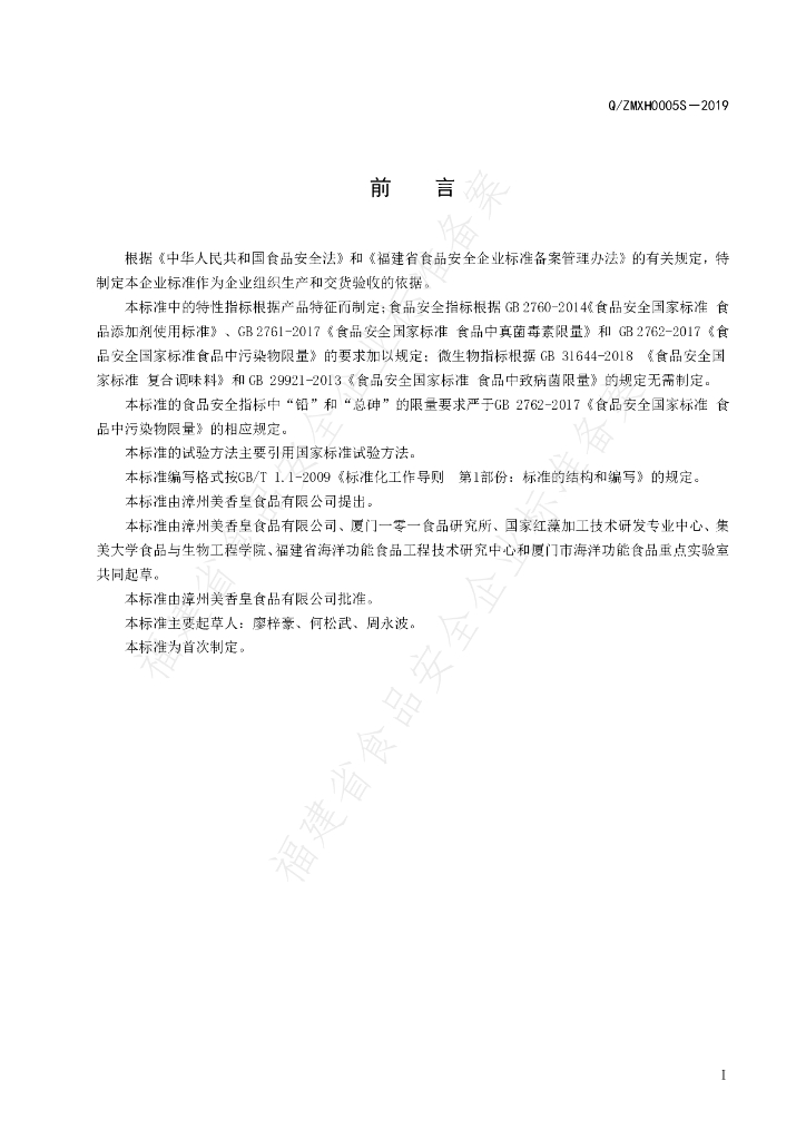 Q/ZMXH 0005S-2019 裹粉调味料
