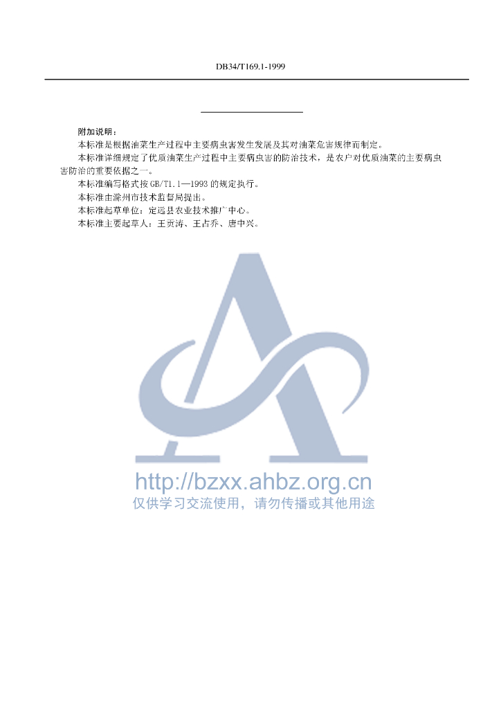 DB34/T 171-1998 优质油菜主要病虫害防治技术规程