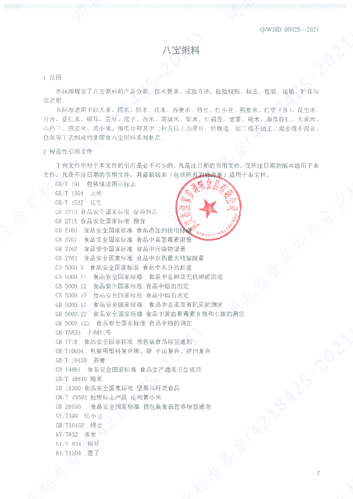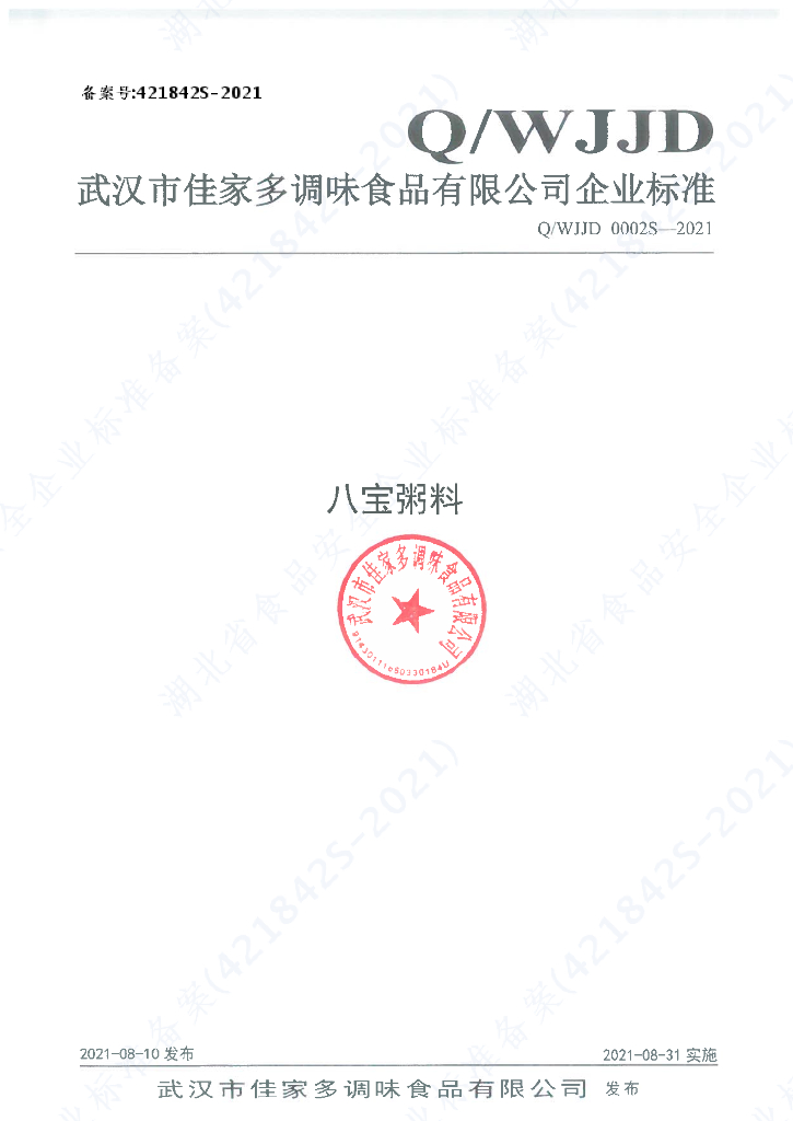 Q/WJJD 0002S-2021 八宝粥料