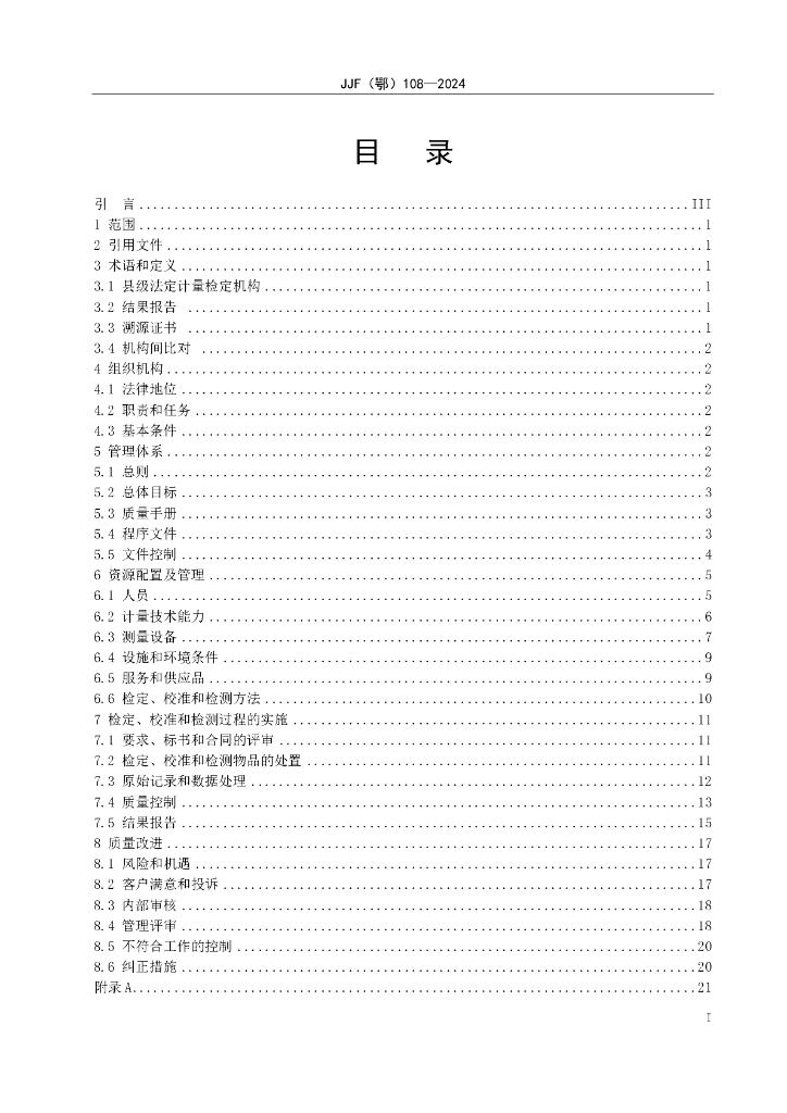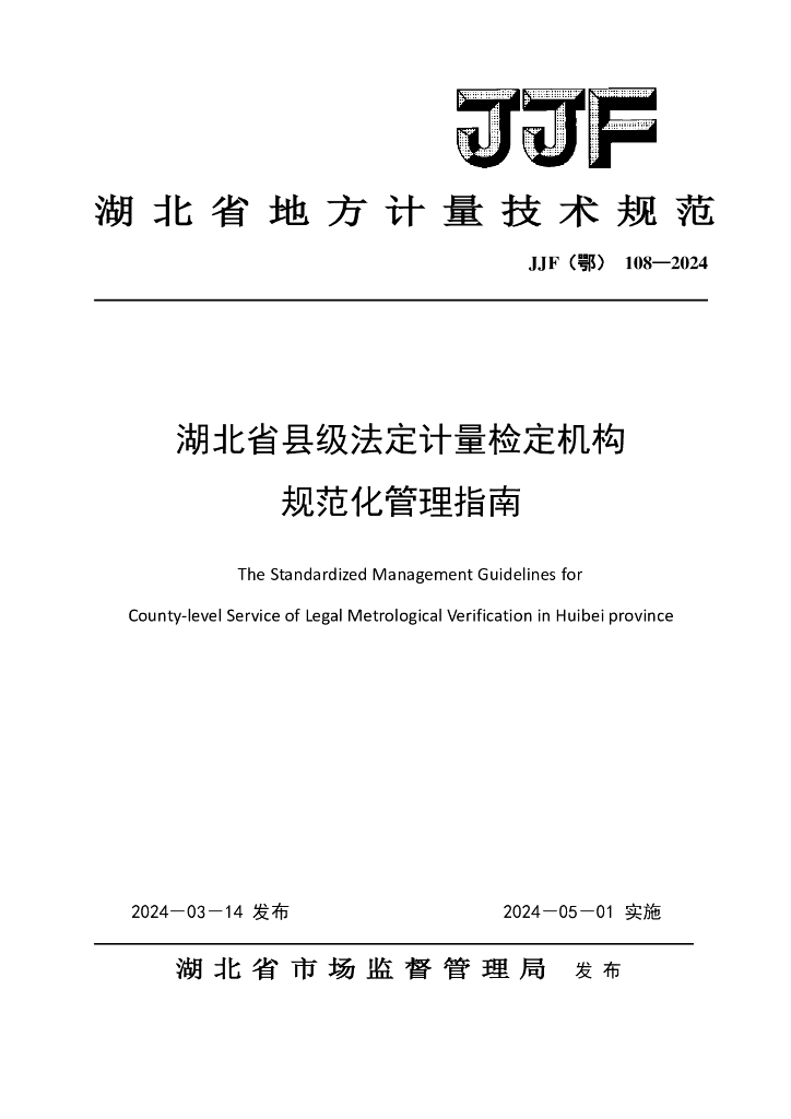 JJF(鄂)108-2024 湖北省县级法定计量检定机构规范化管理指南