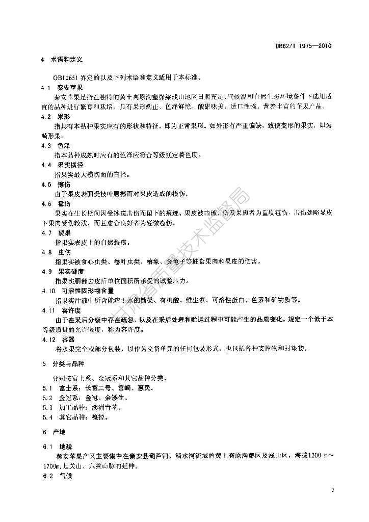 DB62/T 1975-2010 秦安苹果