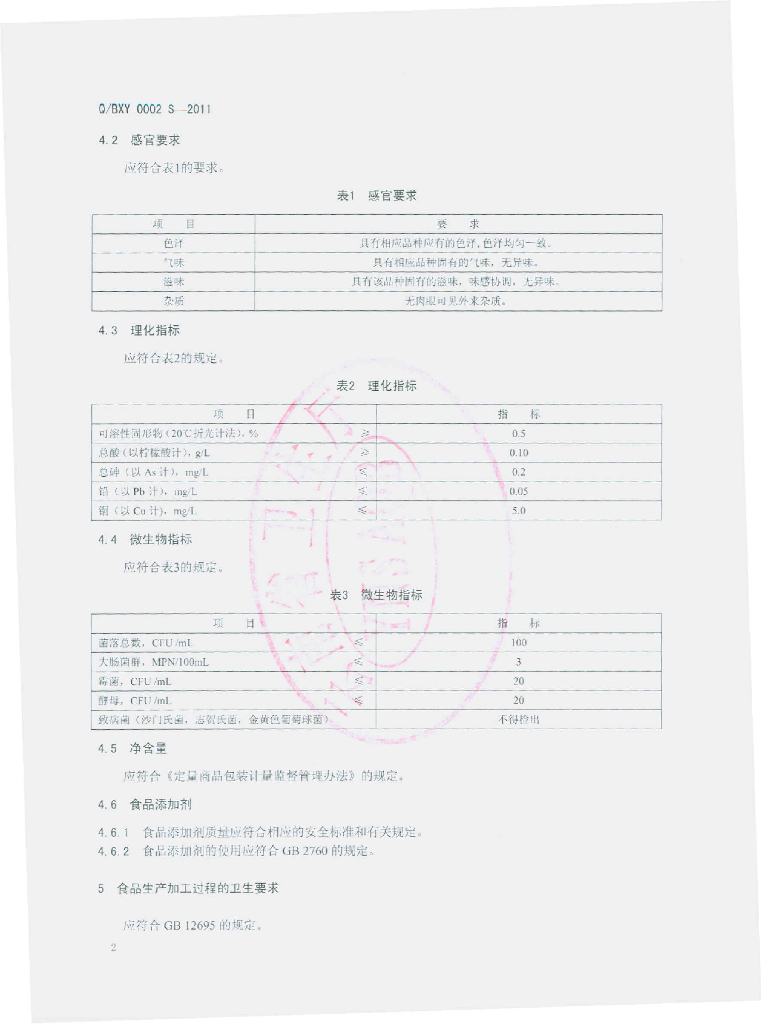 Q/BXY 0002S-2011 果味饮料