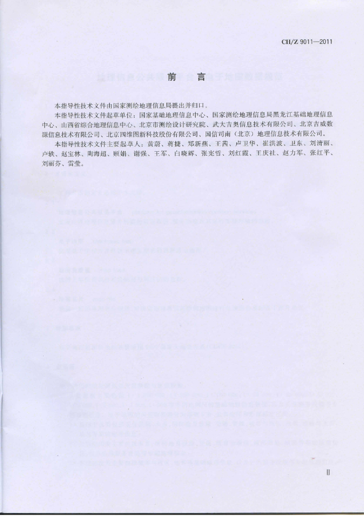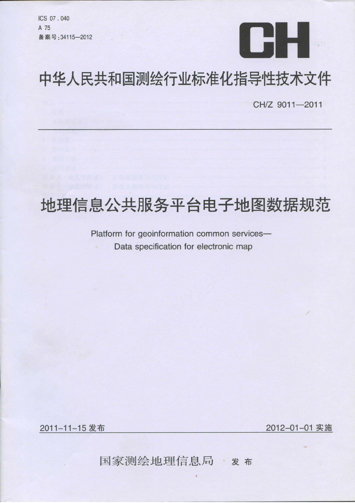 CH/Z 9011-2011 地理信息公共服务平台 电子地图数据规范