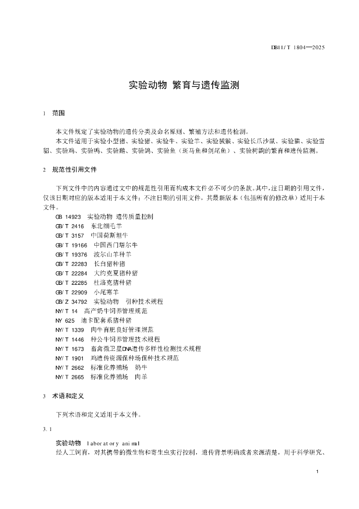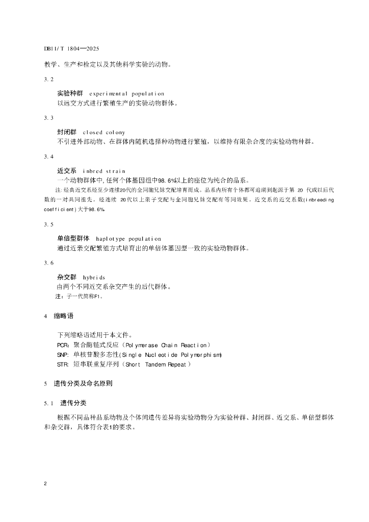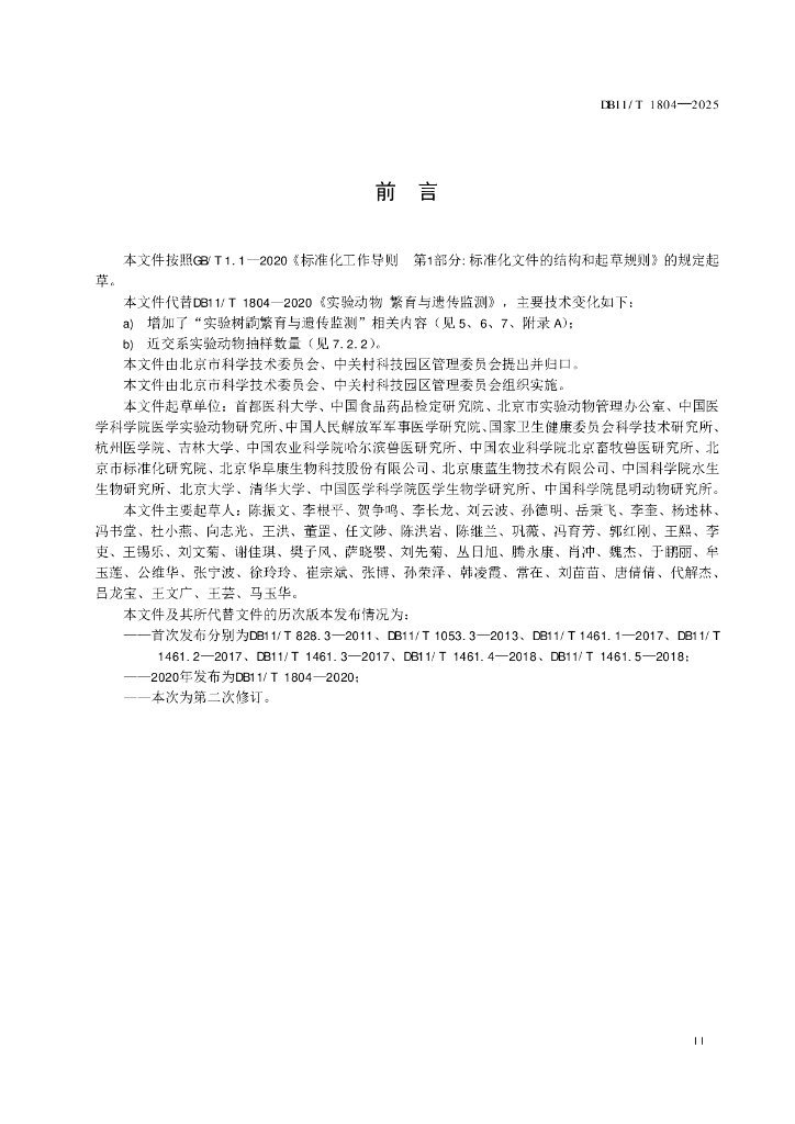 DB11/T 1804-2025 实验动物 繁育与遗传监测