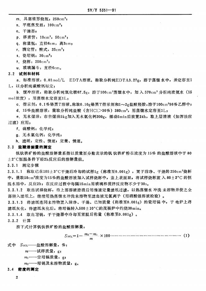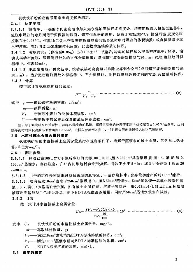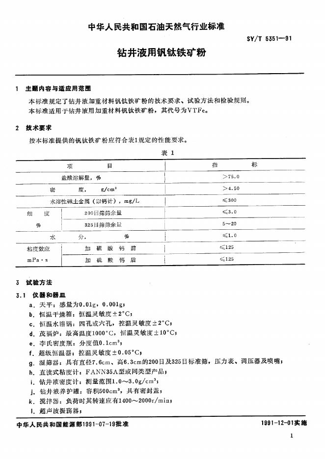 SY/T 5351-1991 钻井液用钒钛铁矿粉