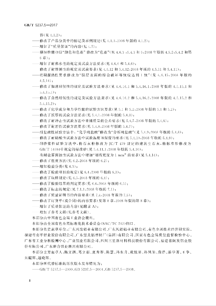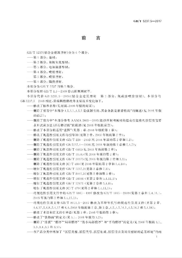 - 代替标准:GB/T 5237.5-2008