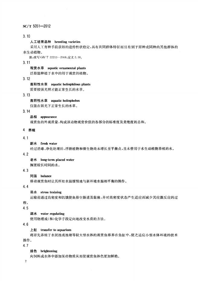 SC/T 5051-2012 观赏渔业通用名词术语