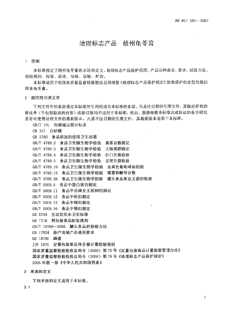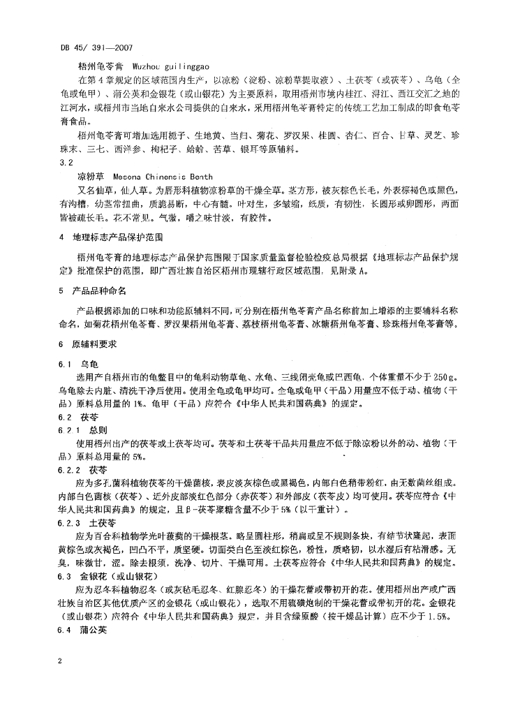 DB45/ 391-2007 地理标志产品 梧州龟苓膏