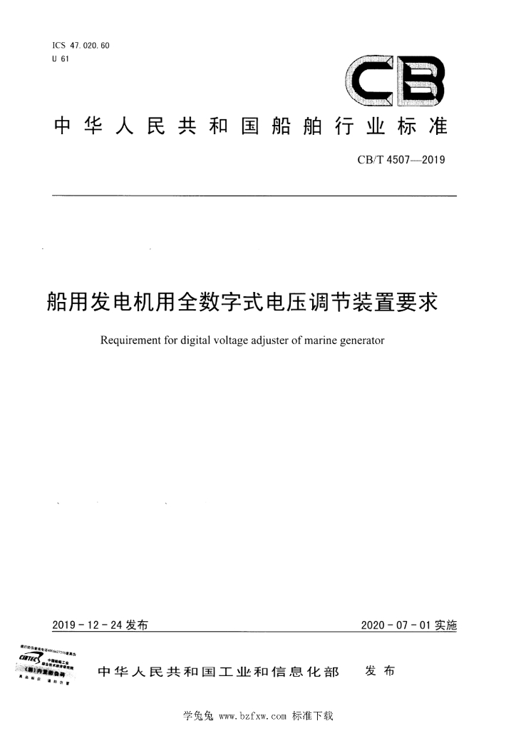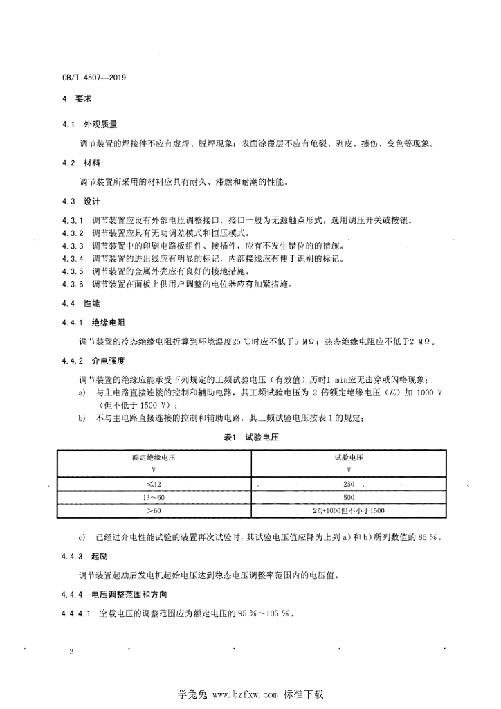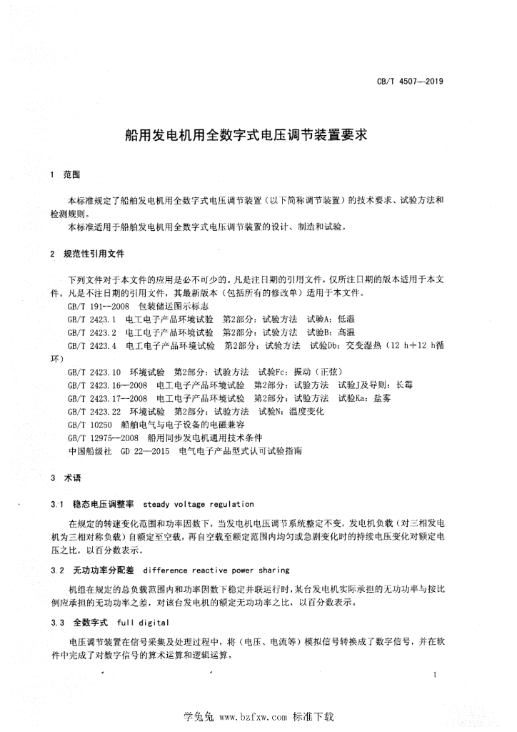 CB/T 4507-2019 船用发电机用全数字式电压调节装置要求