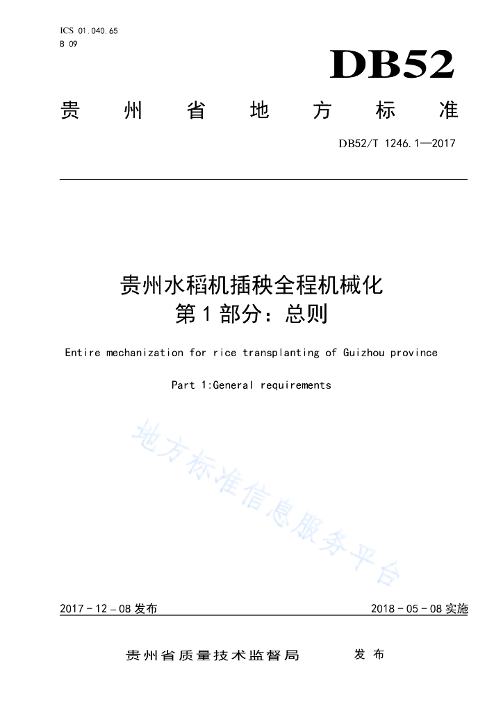 DB52/T 1246.1-2017 贵州水稻机插秧全程机械化 第1部分 总则