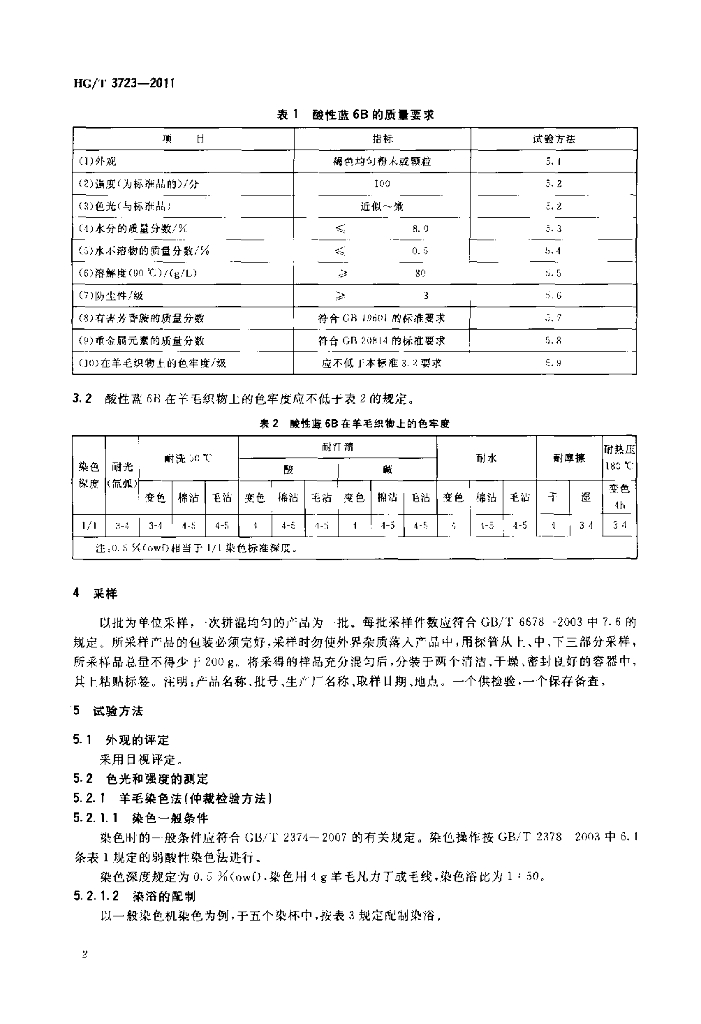 HG/T 3723-2011 酸性蓝 6B(C. I. 酸性蓝 83)