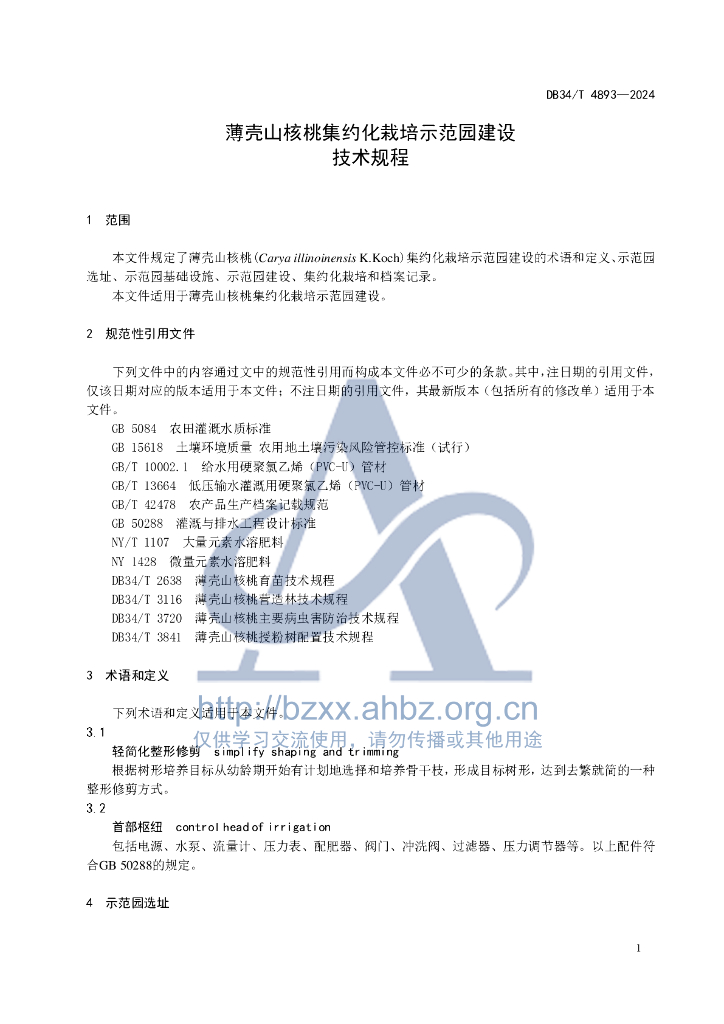 DB34/T 4893-2024 薄壳山核桃集约化栽培示范园建设技术规程