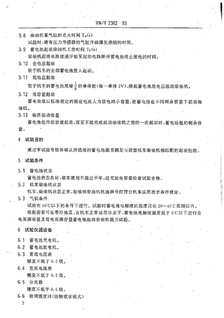 TB/T 2362-1993 内燃机车用蓄电池起动柴油机能力试验方法