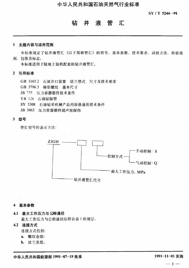 SY/T 5244-1991 钻井液管汇