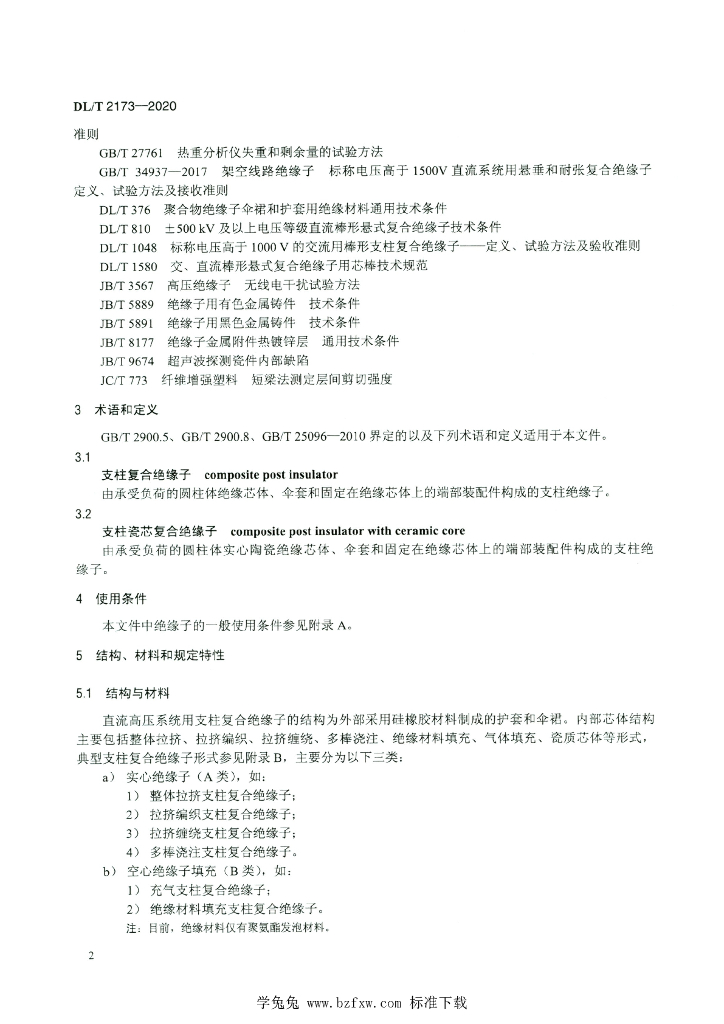 DL/T 2173-2020 ±1100kV支柱复合绝缘子使用技术条件