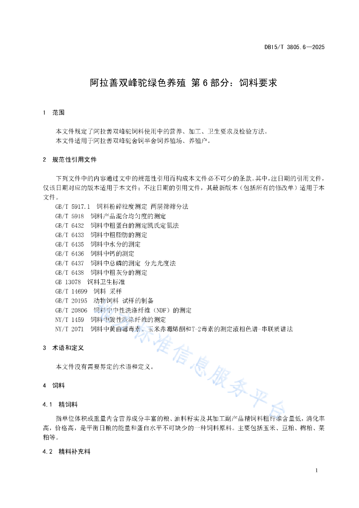 DB15/T 3805.6-2025 阿拉善双峰驼绿色养殖 第6部分:饲料要求