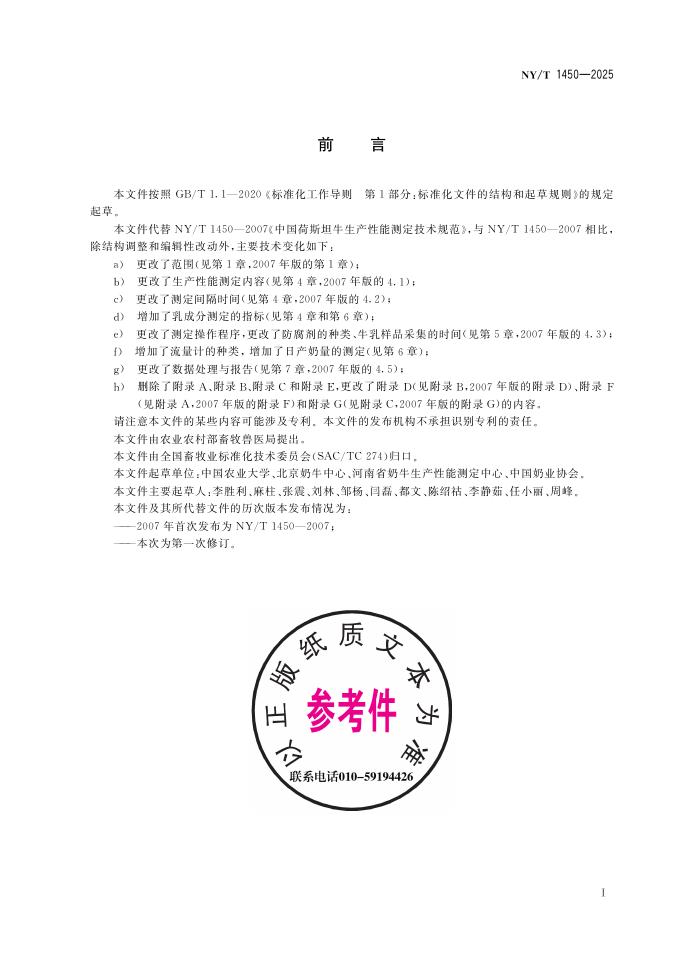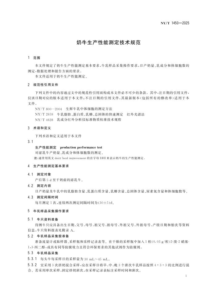 NY/T 1450-2025 奶牛生产性能测定技术规范