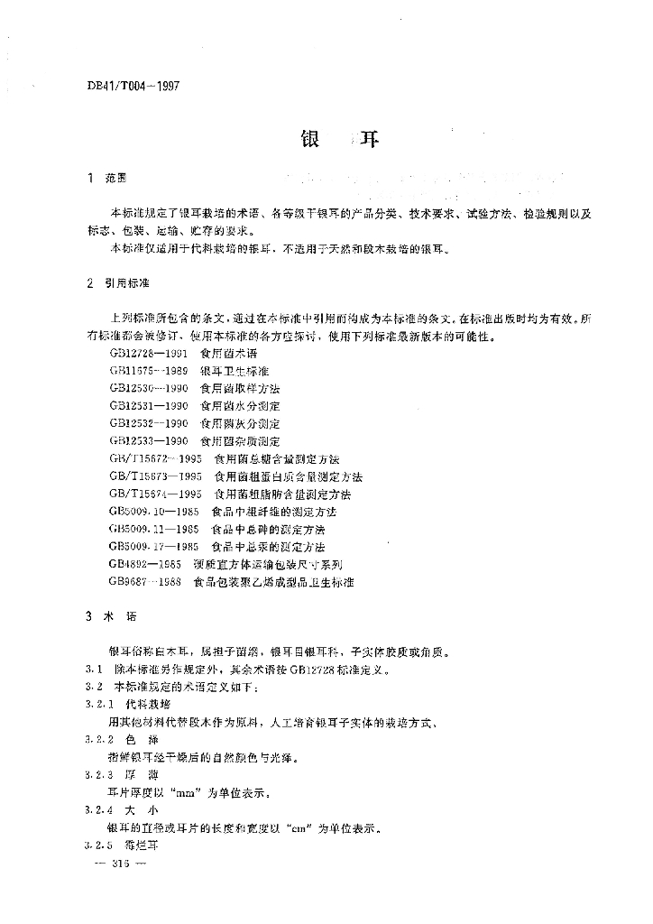 DB41/T 004-1997 银耳