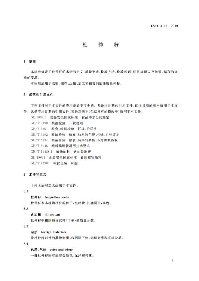 LS/T 3117-2019 杜仲籽
