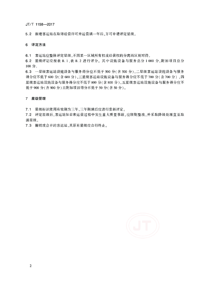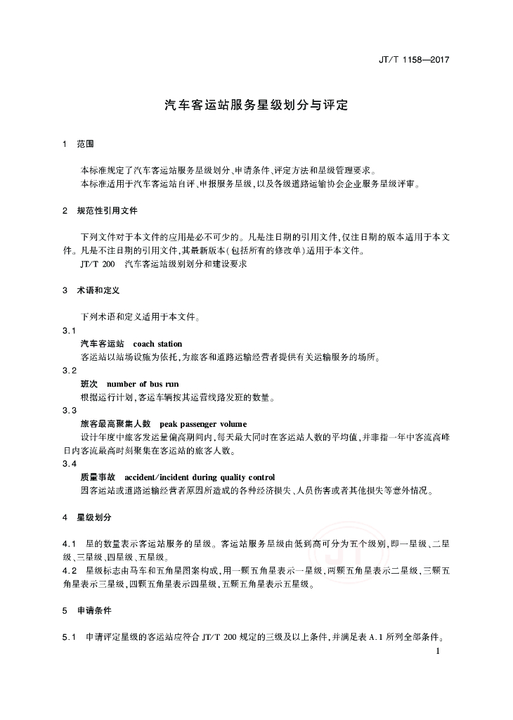 JT/T 1158-2017 汽车客运站服务星级划分与评定