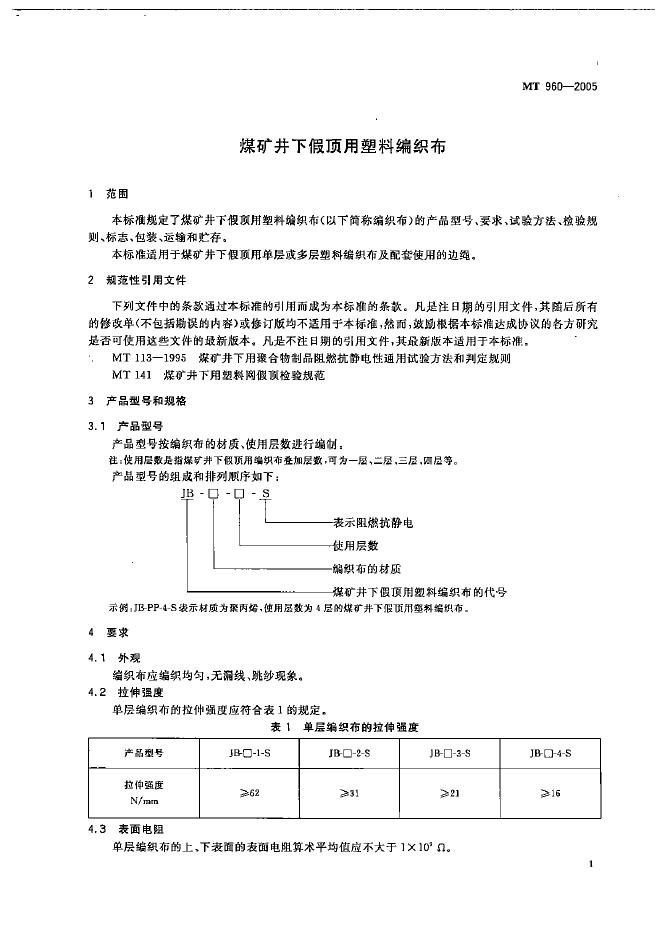 MT/T 960-2005 煤矿井下假顶用塑料编织布