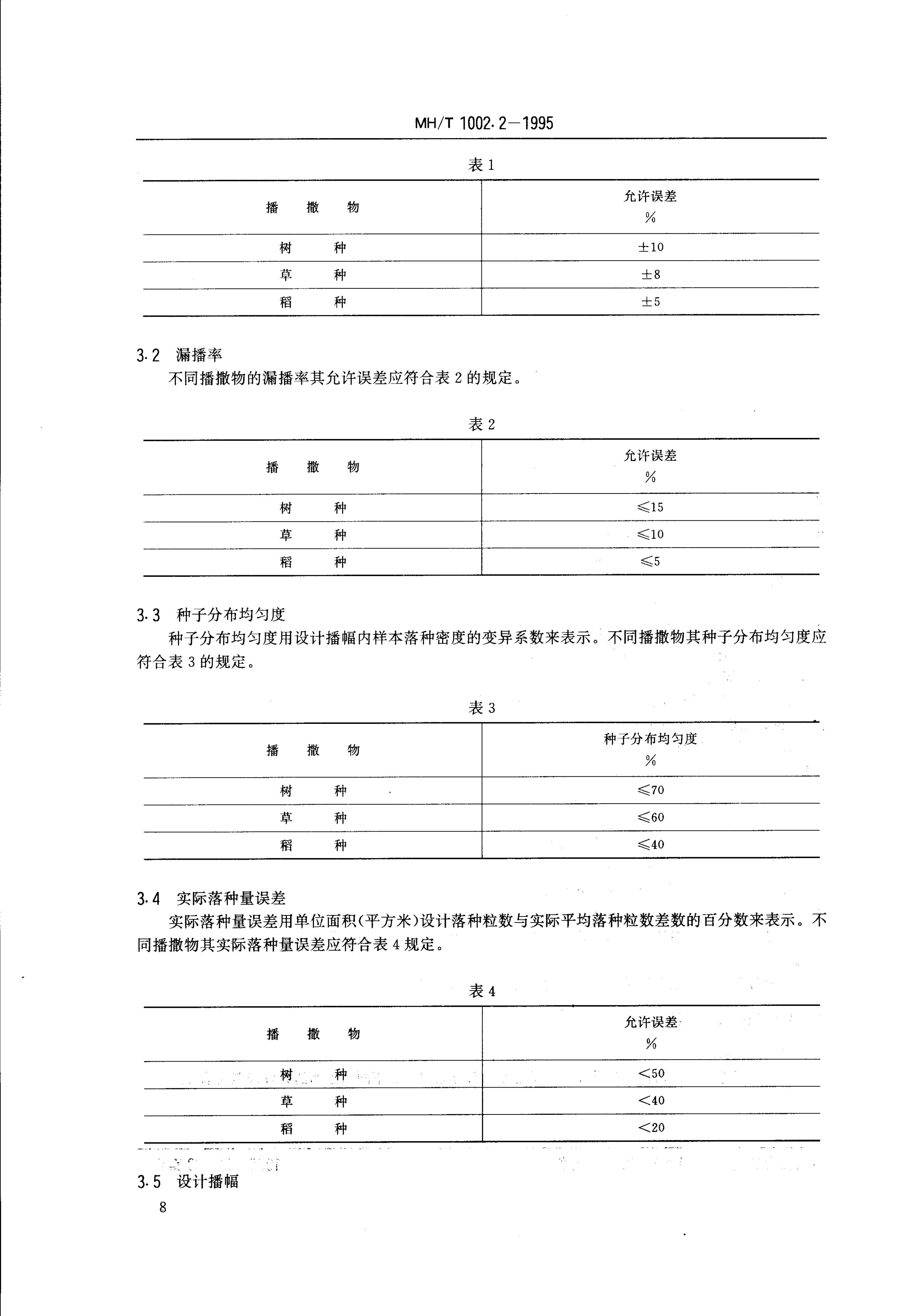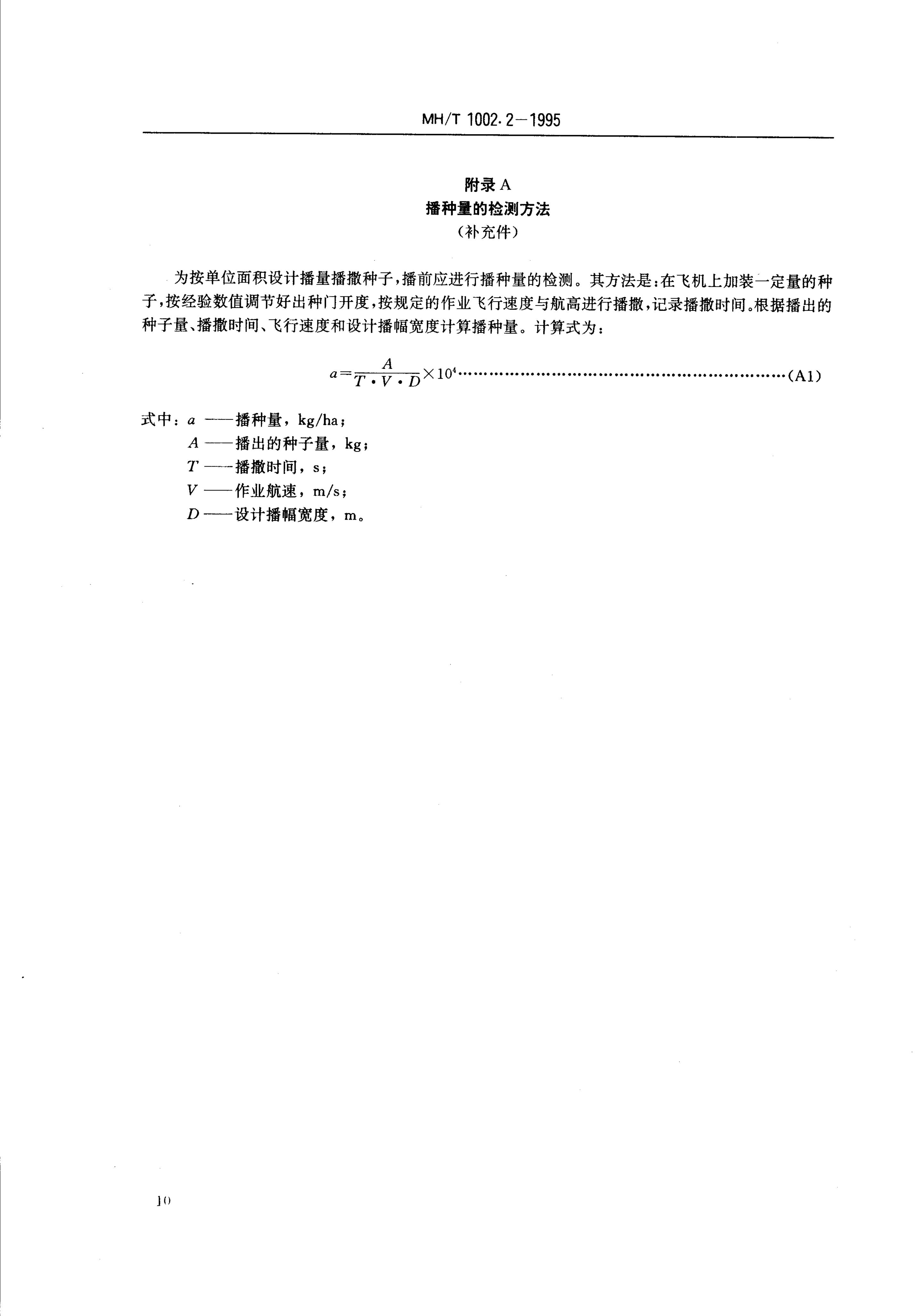 MH/T 1002.2-1995 农业航空作业质量技术指标 播撒作业
