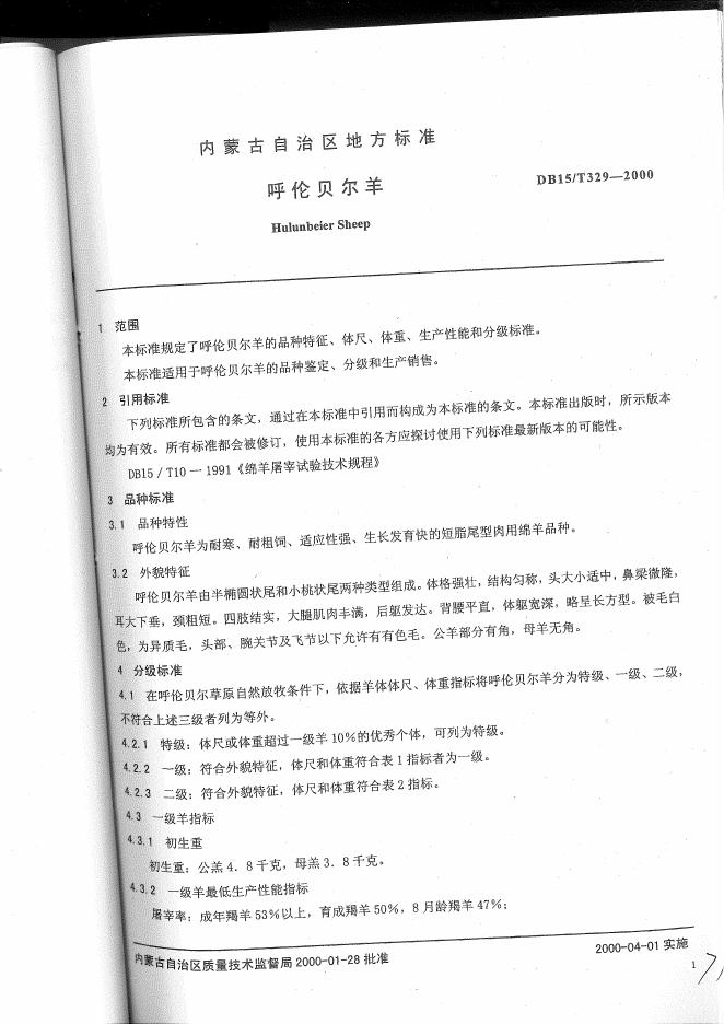 DB15/T 329-2000 呼伦贝尔羊