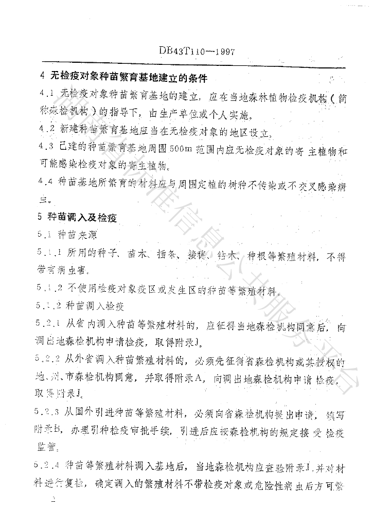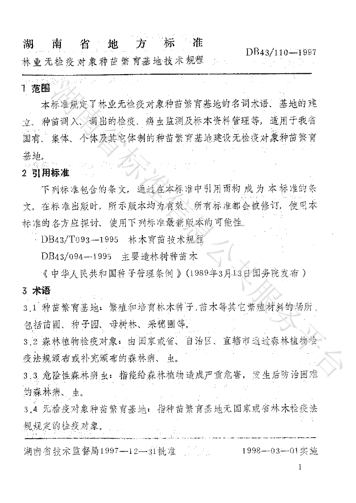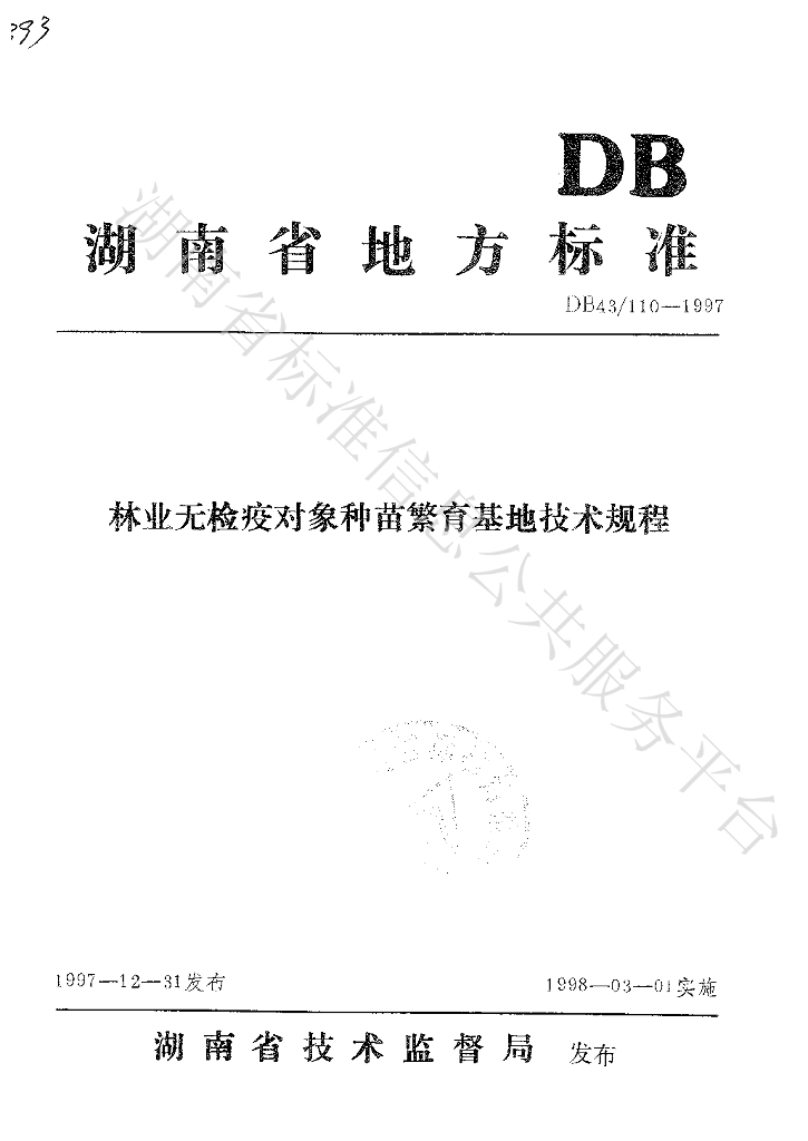 DB43/ 110-1997 林业无检疫对象种苗繁育基地技术规程
