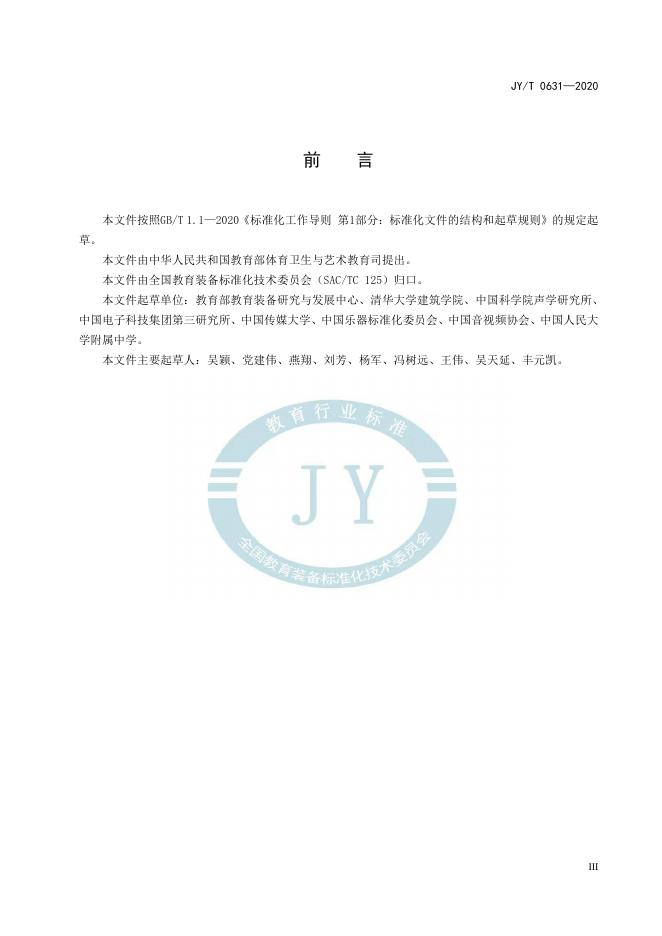 教育部教育装备研究与发展中心、清华大学建筑学院、中国科学院声学研究所、中国电子科技集团第三研究所、中国传媒大学、中国乐器标准化委员会、中国音视频协会、中国人民大 学附属中学