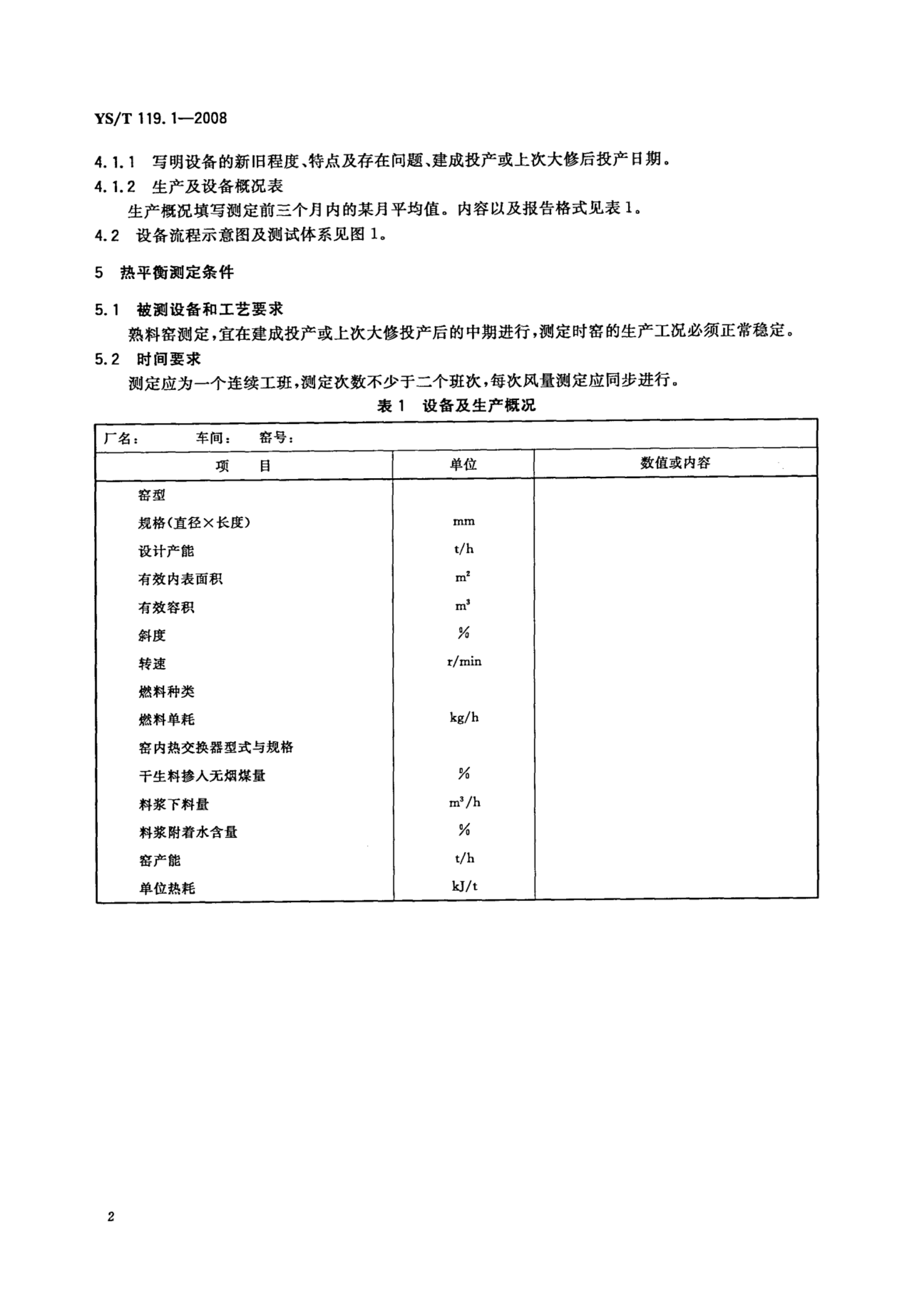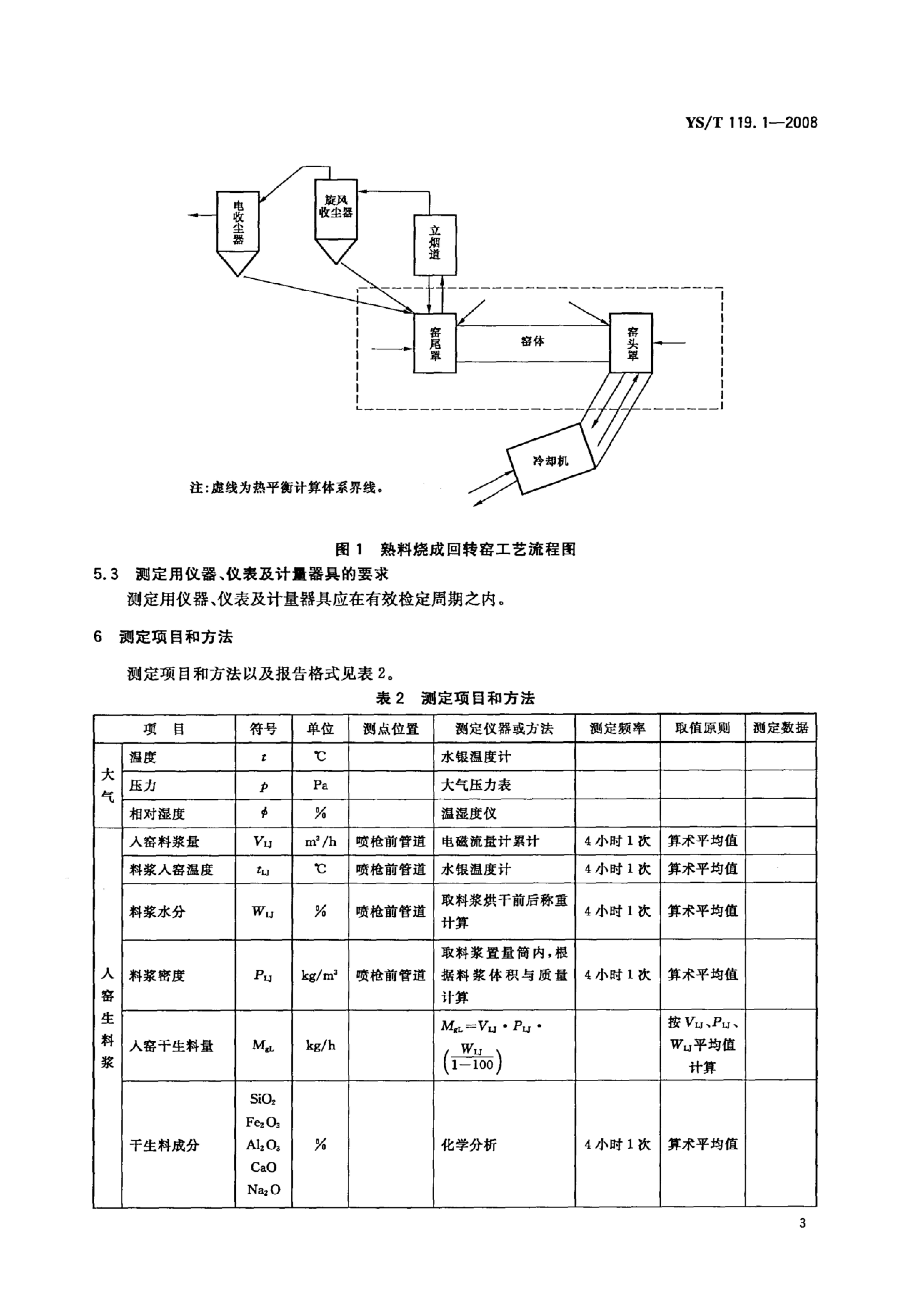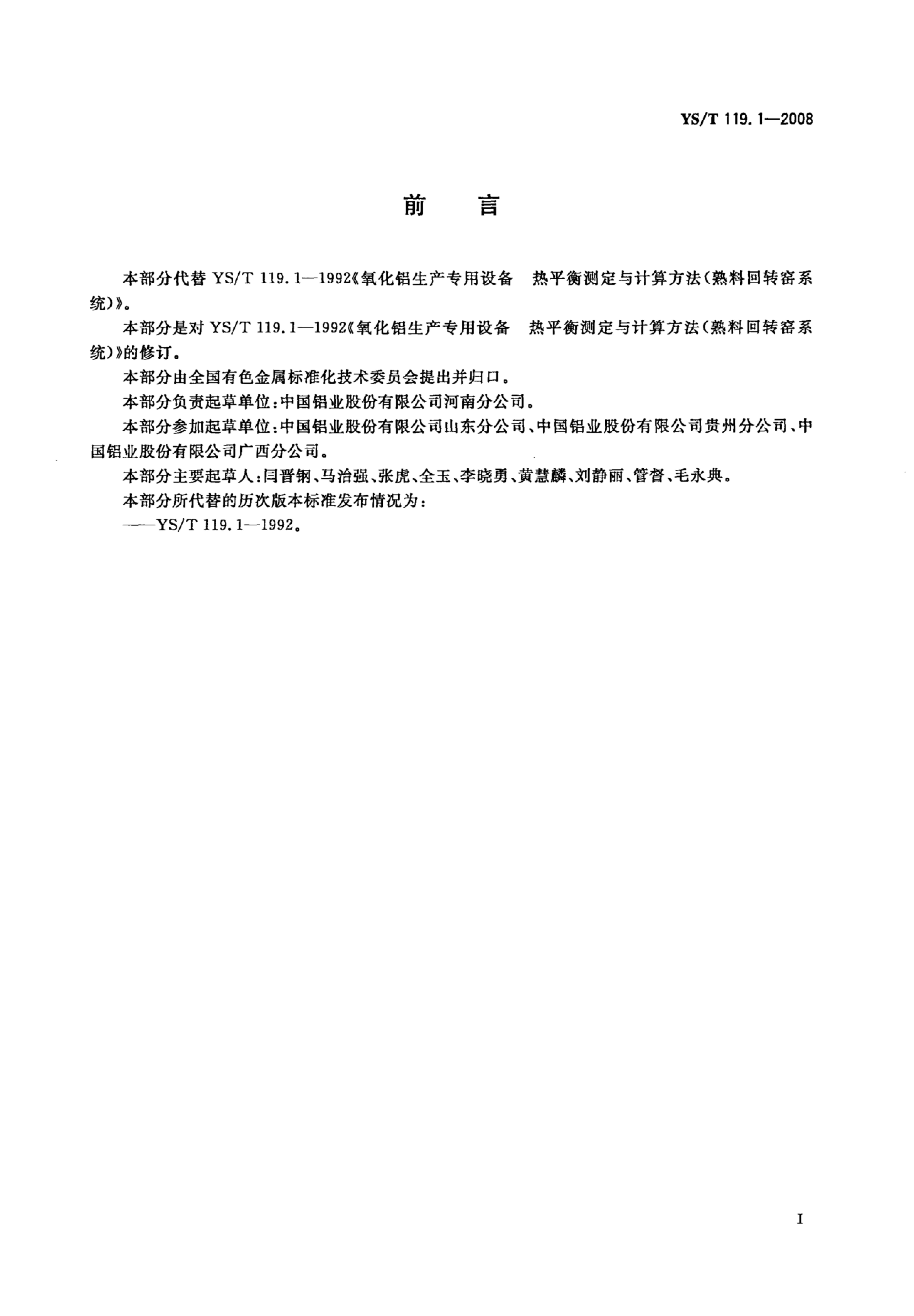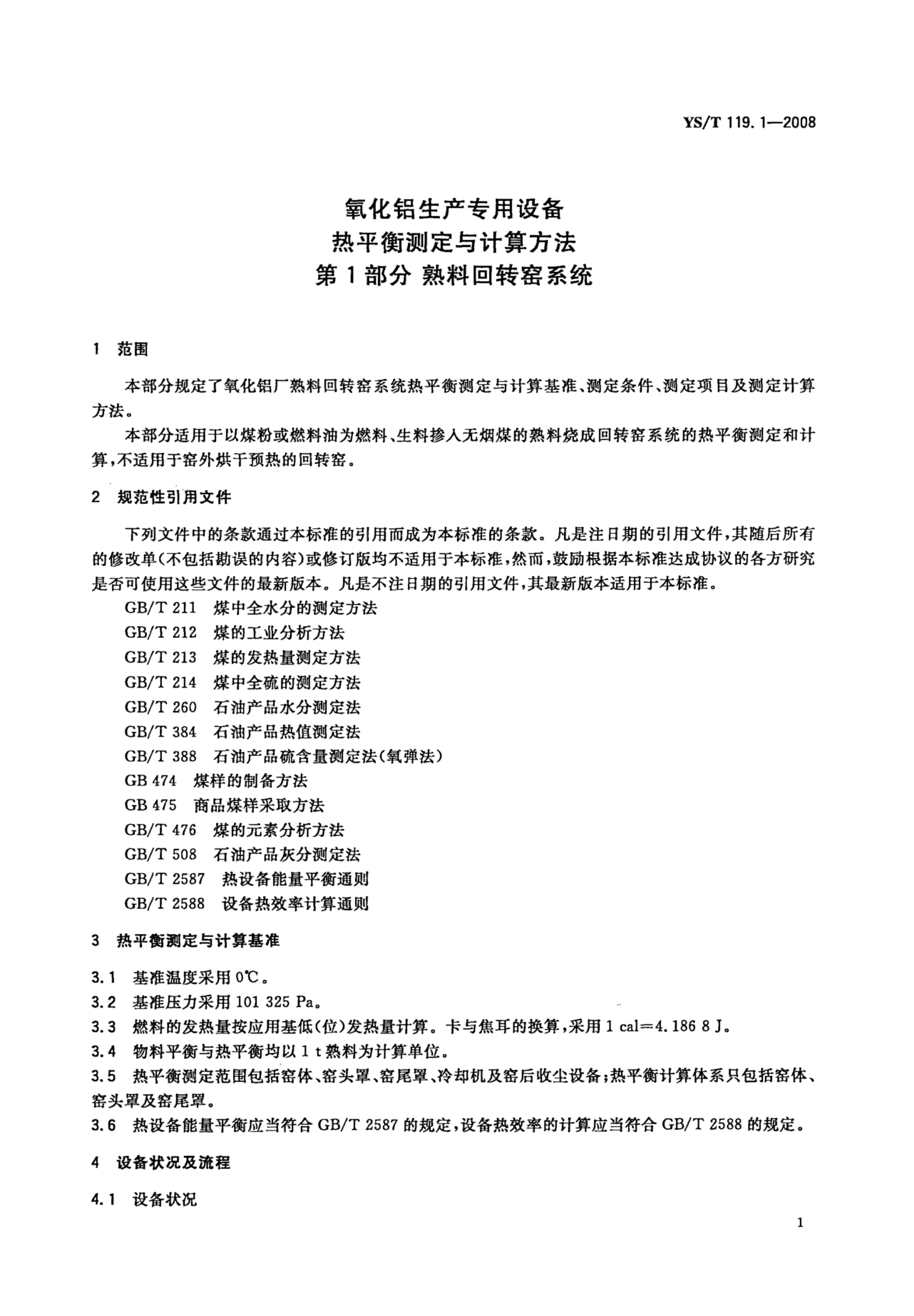 YS/T 119.1-2008 氧化铝生产专用设备热平衡测定与计算方法 第1部分:熟料回转窑系统