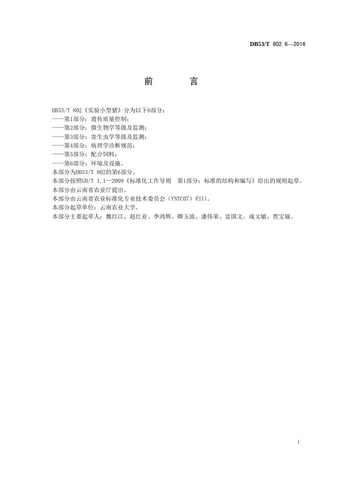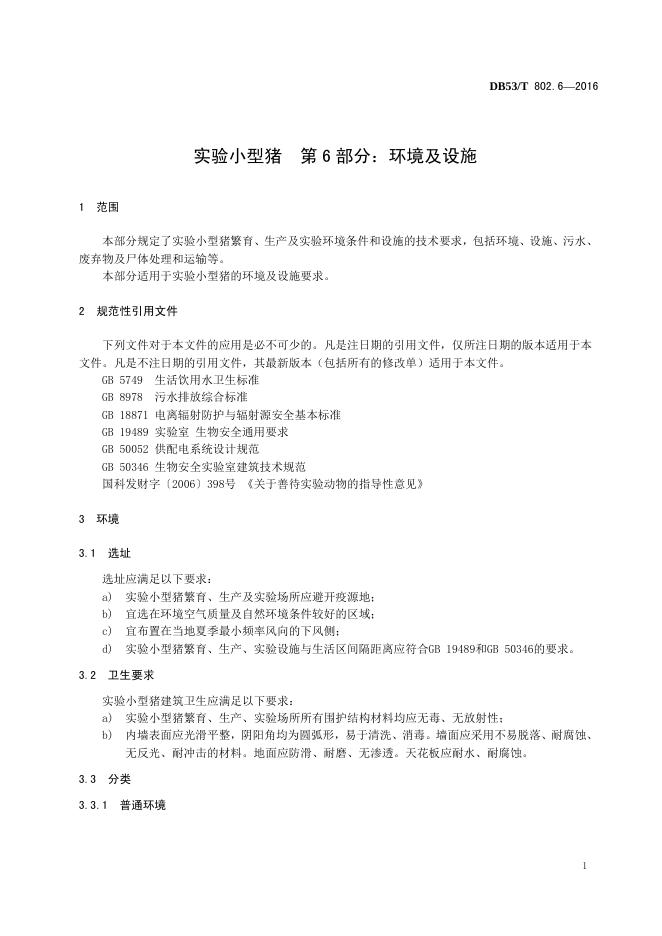 DB53/T 802.6-2016 实验小型猪 第6部分:环境及设施