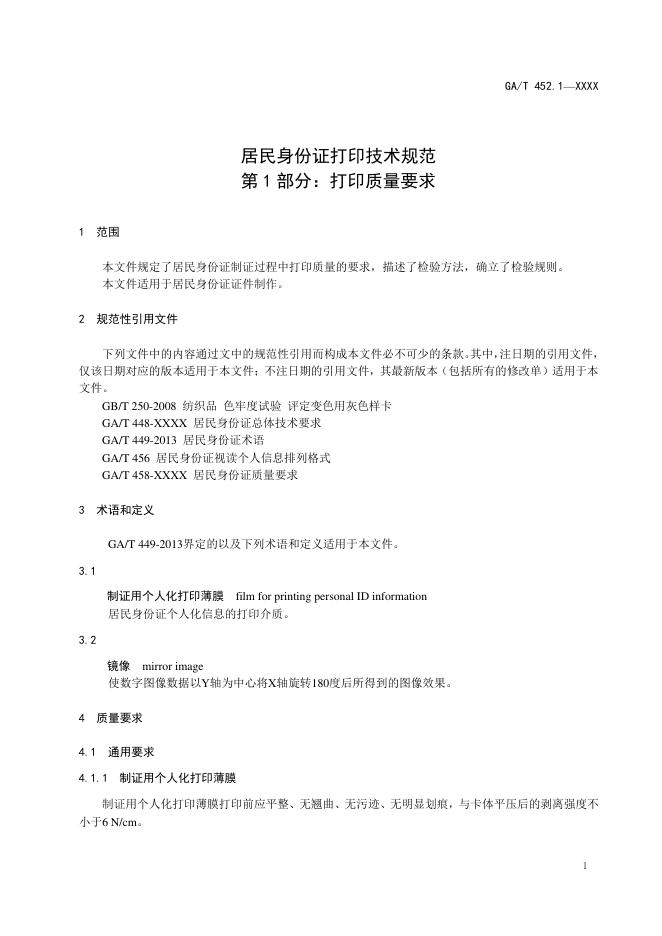 GA/T 452.1-2021 居民身份证打印技术规范 第1部分:打印质量要求