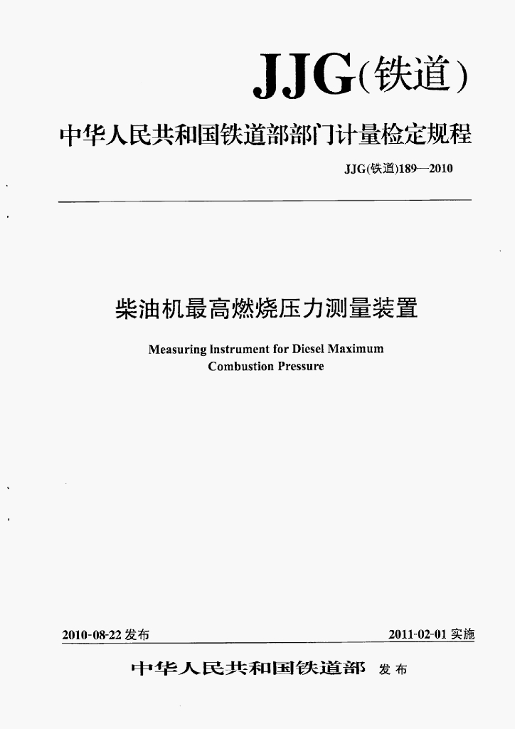 JJG(铁道)189-2010 柴油机最高燃烧压力测量装置检定规程