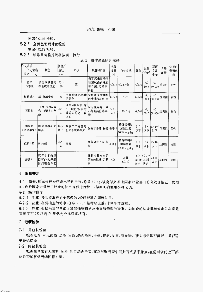 SN/T 0976-2000 进出口油炸水果蔬菜脆片检验规程