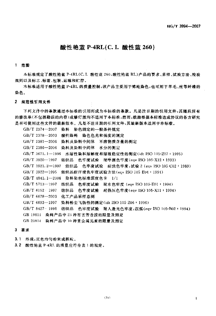 HG/T 3994-2007 酸性艳蓝 P-4RL(C.I. 酸性蓝 260)
